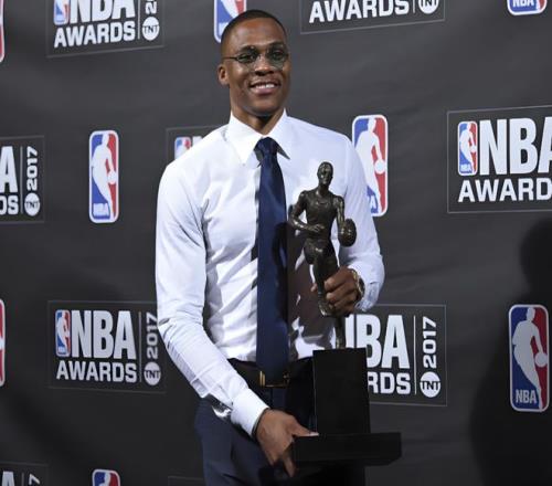 連續(xù)三個賽季場均三雙,單賽季42次三雙,2017年加冕常規(guī)賽MVP。除此之外,威少的榮譽榜單同樣耀眼:2次最佳一陣、5次最佳二陣、2次最佳三陣,9屆全明星、兩次得分王、三次助攻王,同樣入選了NBA歷史75大巨星。