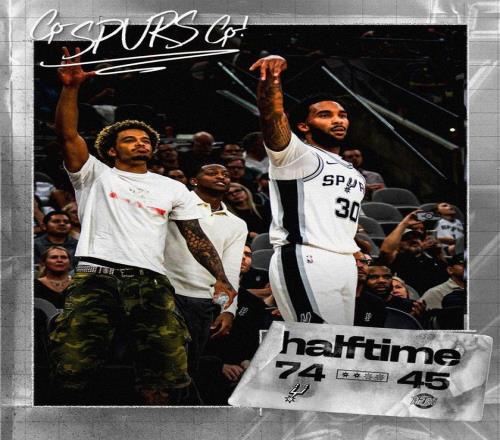 第二節(jié)上來尚帕尼和凱爾登發(fā)力,帶領(lǐng)馬刺打出了15-2的開局,8分35秒馬刺49-24領(lǐng)先達(dá)到25分??魉够蝗诉B拿7分,扛起廣州隊進(jìn)攻,帶隊將分差追回到20分之內(nèi)。后半段廣州隊進(jìn)攻發(fā)力,馬刺趁機(jī)打出得分高潮擴(kuò)大分差。半場比賽結(jié)束,馬刺74-45領(lǐng)先29分。