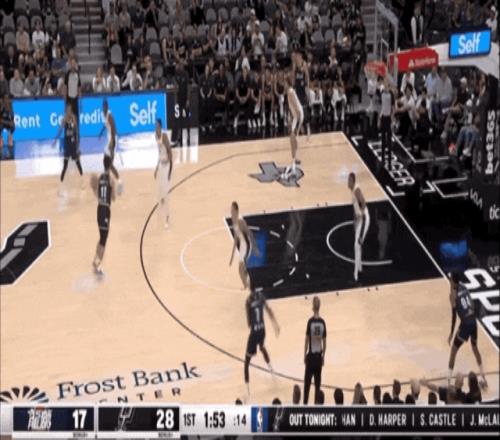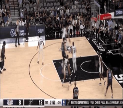 半場比賽結(jié)束時,馬刺74-45領(lǐng)先29分