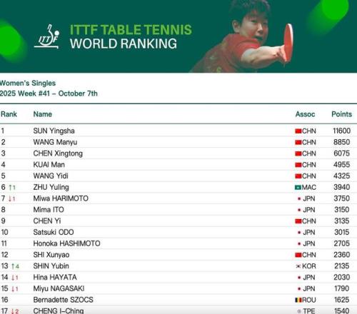國(guó)際乒聯(lián)公布了最新世界排名,代表中國(guó)澳門(mén)參賽的朱雨玲升到了第六,超越了日乒新一姐張本美和。朱雨玲在去年9月復(fù)出參賽從零開(kāi)始,只用了1年時(shí)間就升到了世界第六。