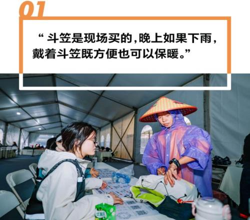 在選手領(lǐng)物現(xiàn)場,出現(xiàn)了一道披著紫色雨披,背著斗笠正進行強裝檢查的身影。旁邊同行的男人拖著行李箱在一旁等待著她。來自湖南懷化的張秀梅,這次跟丈夫一起來參加的是88公里組別的比賽。