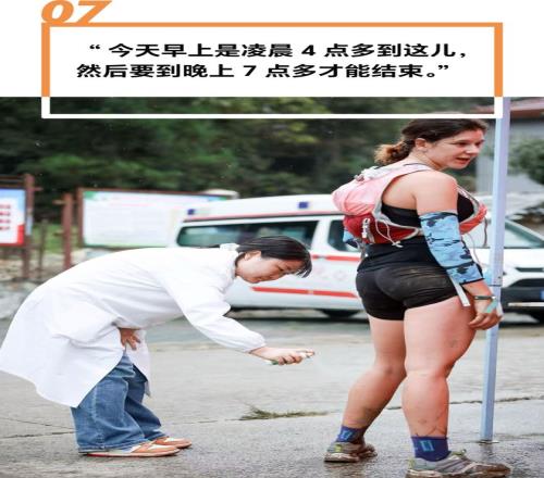 莊彬彬是本次賽事的醫(yī)療救援人員之一。她昨天剛上完夜班,今天又接著加班參與保障。凌晨4點多,她和同事們就已在救護車上隨時待命。這已不是她第一次保障越野賽,去年的比賽中,她救助了很多擦傷和肌肉拉傷的選手。