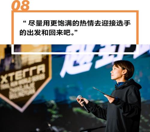 早上五點過,主持人小美已經(jīng)在比賽現(xiàn)場做好準備等待著選手們的到來。對于保持主持人充沛狀態(tài)的秘訣,她表示自己曾經(jīng)做鐵三和越野選手的時候,如果現(xiàn)場的MC、志愿者們能給到她很多的熱情,那將會讓她更加充滿能量。所以當(dāng)自己做主持人的時候,她也想以自己的最大力量讓這些選手們感受到熱情和支持。